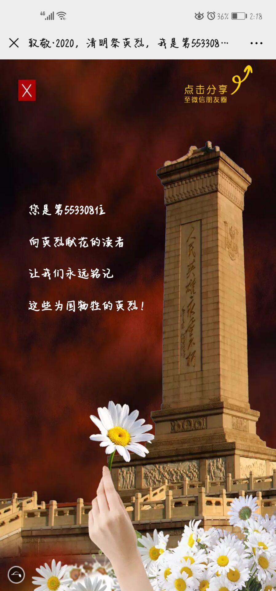 线下,4月4日10时起,同学们停止全部娱乐活动,和全国人民一起默哀3分钟,致敬英雄,共悼逝者。线上同学们通过登录“中华英烈”网进入“网上祭英烈”专题页面进行网上扫墓,点击网页中的花篮向人民英雄纪念碑鲜花,以表达对革命先烈的哀悼和缅怀之情,同时留下“传承红色基因,勠力同心实现中国梦”、“牢记历史,不忘过去”、“勿忘历史,勿忘英烈,奋发图强,扬我中华”等一段段寄语向革命英烈表达崇敬之心、思念之情和传承之志。