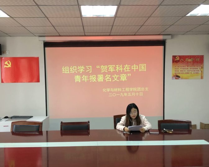 为纪念五四运动100周年,深入学习贯彻习近平总书记在纪念五四运动100周年大会上的重要讲话精神,化学与材料工程公司于5月10日中午在逸夫楼南楼三楼会议室组织学习“贺军科在中国青年报署名文章”。本次会议由团总支老师关旋主持,全体团学青成员参加。