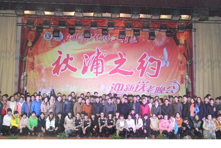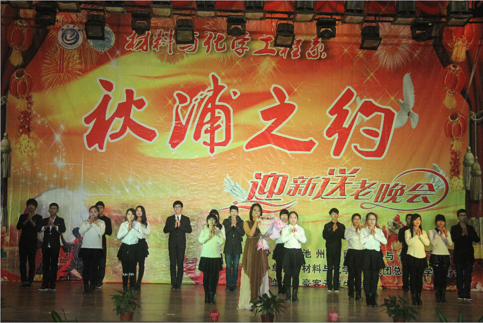 12月11日晚7点,材化系2014年“秋浦之约”迎新送老晚会在博古礼堂成功举办。员工处处长胡兵老师、成教院副经理刘四运老师、系党总支书记吴新民老师、系主任汪新老师、系党总支副书记吴国志老师、系团总支书记朱子春老师、14级新生班辅导员及我系部分老师出席并观看了晚会。