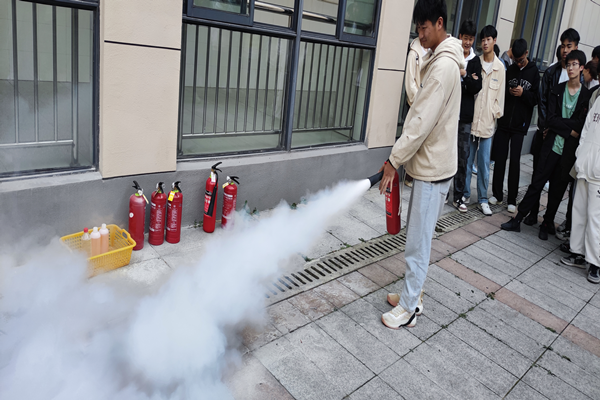 在本次应急演练中,詹庆向同学们细致地介绍了实验室常见安全问题、常用灭火器种类及使用方法、逸夫楼消防设施安装位置及疏散通道、危急情况下逃生自救等内容。同学们认真聆听实验室安全知识讲解,并积极地亲身体验灭火器灭火操作。整个演练过程秩序井然、配合默契。