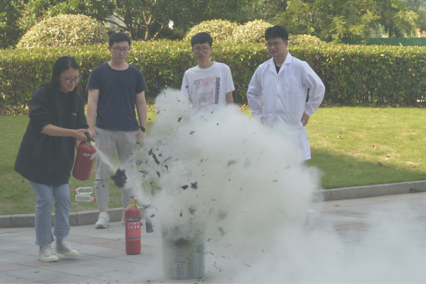 本次应急演练分为实验室安全知识讲解、实验室初起火情应对预案、灭火器的使用和实验楼紧急疏散4个环节。重点讲解了员工在发生这些突发事件时如何开展紧急自救,其他同学应如何警戒、撤离并报告实验室安全负责人等。模拟了实验过程中线路故障致使发生电器着火,易燃化学品起火等险情时的应急处置情况。参演员工实际操作了灭火器灭火、使用紧急喷淋装置及消防通道逃生等过程。整个演练中,参演师生集中思想,听从指挥,动作迅速,疏散有序。